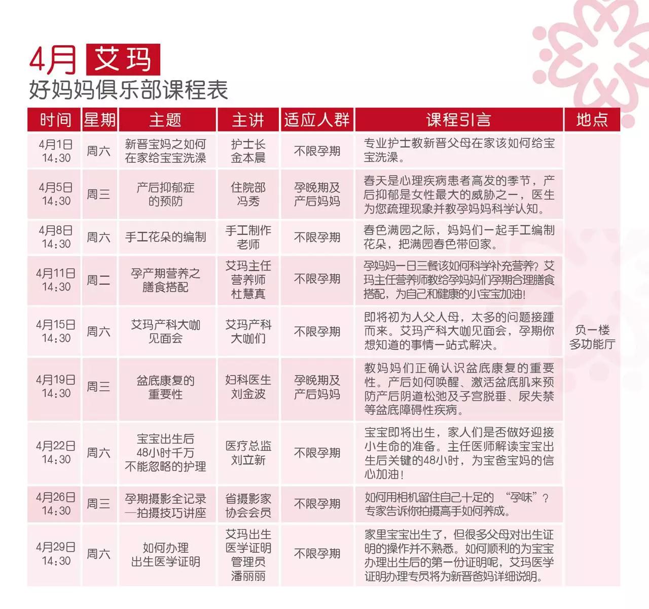 活动地点:济南艾玛妇产医院(负楼多功能厅)